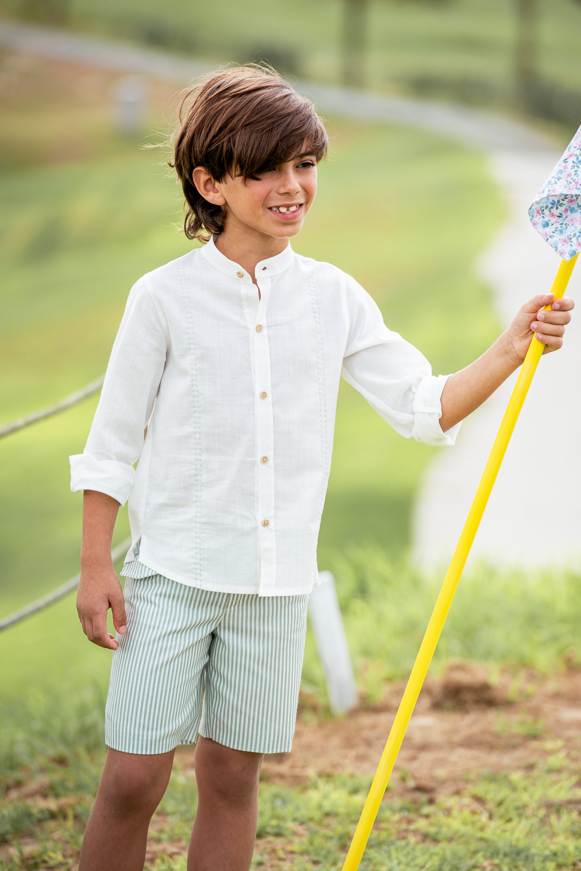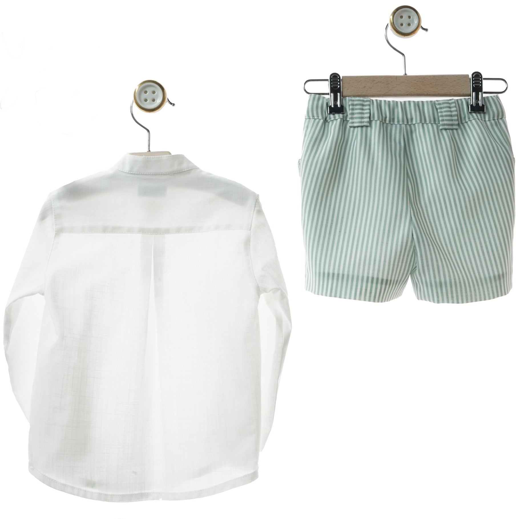 Dress your little one in comfort and style with this charming Green Boy's Set. Featuring a crisp white cotton shirt paired with classic striped shorts, this two-piece outfit is perfect for everyday wear. Made from 100% cotton, it's soft, breathable, and gentle on delicate skin. The timeless design works for playdates, family gatherings, or casual outings. Easy to mix and match with other pieces in his wardrobe.